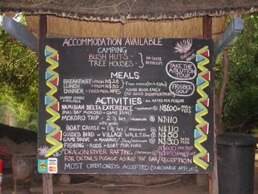 The information board at Ngepi Camp… The “ablution tour” proved very interesting…