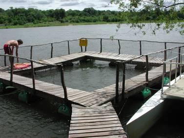 The world’s first hippo and croc diving cage, Kavango River, Caprivi….