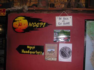 The bar at Ngepi has many signs that foretell of service levels to be expected, some humorous, other deadly serious, like “Be Nice or Go Home”, and “Our waiters have the day off, please serve yourself…” Others such as “Prices subject to customer’s attitude” and “If you are with George Bush, then you are not welcome here” might irk certain clientele… Also, “Be careful with your personal property; please tell reception immediately if you lose your sense of humour…” We tried, but nobody would listen!!