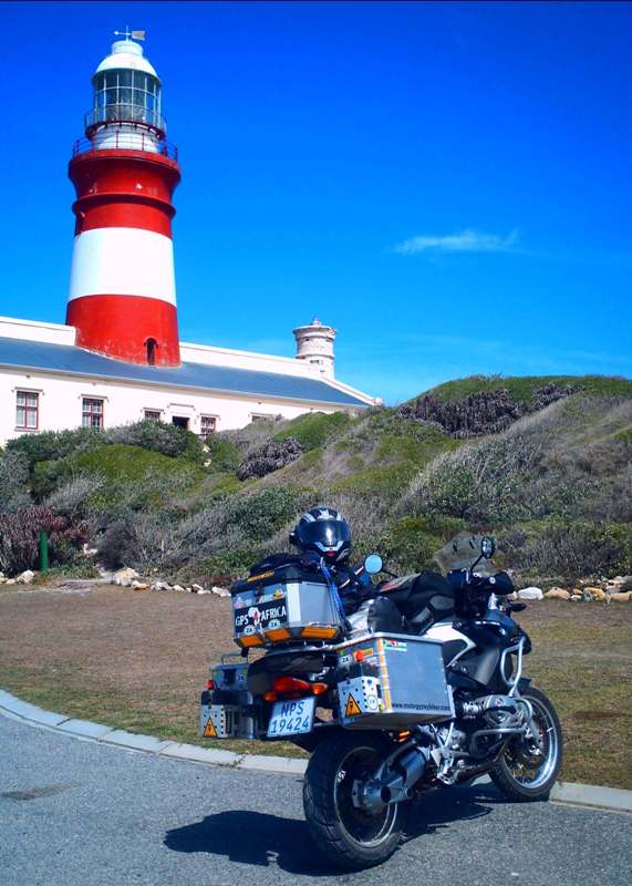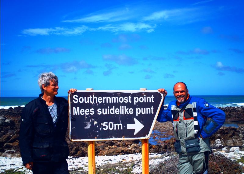 We rode through Struisbaai together and on to L’Aghulas, where we parked at the lighthouse. After having a drink at the restaurant under the lighthouse, we rode out to the Most Southern Point in Africa. The usual photo-shoot took place, and we were quickly surrounded by many of the other tourists visiting this site. They asked the usual questions, and took a lot of photos of us together.