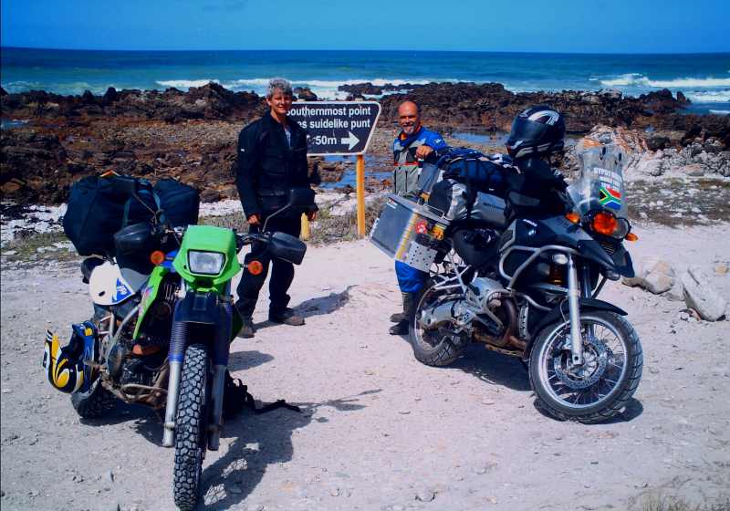 Your near misses today reminded me of our first biking experience together in 1980. Do you remember my CG125 (delivery bike) that we crashed down the steep hills of Glenvista. Man, I thought we were going to die that day – you driving(for the first time)and me on the back. Noone told you that you cannot go into a sand-covered 90 degree corner on a 60 degree decline at 80km/h !!! As we flew through the air, over the edge of the hill and onto the meandering section of the road below, I thought we were finished. But here we are, 30 years later and still laughing about motorbikes. Enjoy your ride. I am enjoying following it.