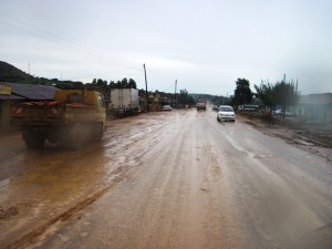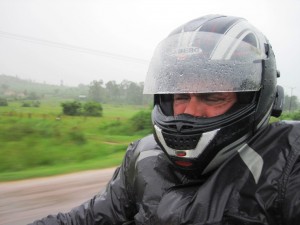 Far ahead of me, huge storm clouds had been gathering since I turned the Big Fella in a north easterly direction, and pointed his nose in the general direction of Kampala… At Ntungamo, I stopped to refuel, and saw that the “weather” had now consolidated into a massive storm front that sat squarely in our path. The new highway began just outside of town, and I knew that I could make good time on this stretch of road. I put on my rain gear and zoomed out to do battle with the wind and the rain…