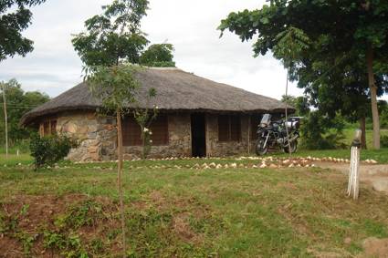 The next twenty minutes were ridden at a good pace, as the road surface along this stretch of the lake was in excellent condition… The sign for Ngara Beach came up and I turned left, down towards the lake on a narrow rocky pathway that served as a road… The track wound down among tall trees, and then out onto a flat section between two maize fields, past a large Baobab and finally through the gates of the lodge. I parked the “Big Fella” on a concreted section of the parking area, and was immediately welcomed by Daf, a friendly guy who seemed genuinely happy to see me. I realized why a few minutes later, when he told me I was the only guest!! There were two guys camping under a tarpaulin, but he said they didn’t count as guests, as they were cooking there own food, and were not “buying anything”…We negotiated the rate for about ten minutes, while I drank some water and muttered about going someplace else… He finally relented, and a few minutes later, I was comfortably ensconced in a stone cottage known as “VIP No: 1”. There were two such cottages available, as well as eight reed huts, a large dining area looking out onto the lake, and a cosy bar…