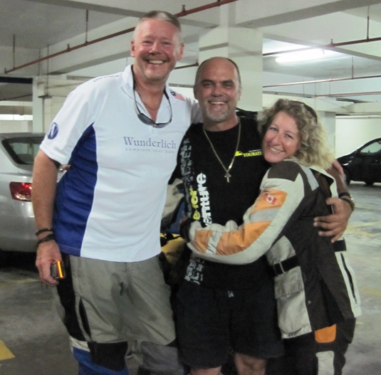 Another goodbye, this time in May 2011, in Johor Bahru, Southern Malaysia. They headed north to Kuala Lumpur to catch a flight to Perth in Australia, while I set about trying to get the Big Fella onto a boat for Sumatra or Java…