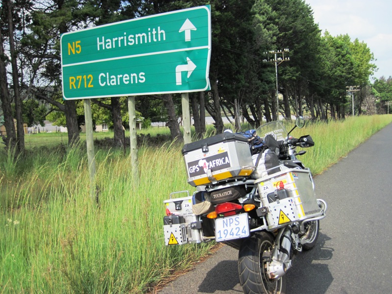 I passed quickly through Vrede, eager to get to Clarens, where I had planned to stop as early as I could to get some work done on my website… More rolling grassland on the way down to Warden, where I skipped down a short section of the N3 and then turned West, onto the R714 to Bethlehem… The clouds had by now dissipated, and I rode in bright sunshine all the way into the bustling town of Bethlehem, home of one of the most successful BMW Motorcycle dealers in the country, Hochland BMW… I rode straight through town, and out onto the R711 until I got to the turnoff to Clarens… Here I stopped for a short break, to get some liquid down my throat while my mind went back to previous rides I had made down this same country road… This is a very special place to ride… The Maluti Mountain foothills, with their sandstone Inselbergs rearing their multi-coloured heads out of the undulating countryside around them… Amazing formations, many of them the guardians of ancient Bushman Art, detailing rituals and hunts from long, long ago…a heritage that we should all strive to preserve…