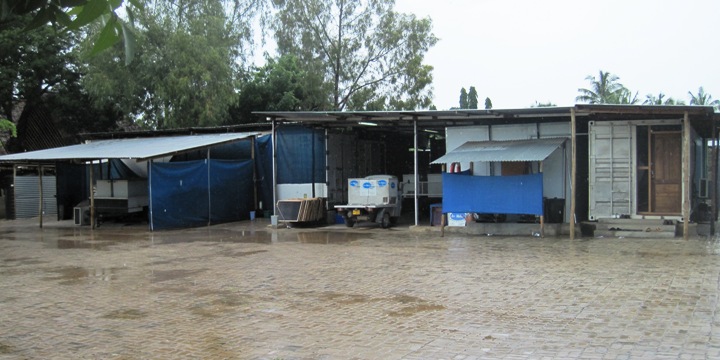The area around the freezers and containers has been paved, which, considering the rain that had fallen earlier that morning, had been a very good idea, as deliveries of his product were not affected at all… Had it not been for the paving, the area in front of his little factory would have been a muddy mess… Electrical cables and water reticulation leading to the ice machines have been tucked away neatly, and the staff working there, have obviously been taught NOT to operate like Tanzanians…