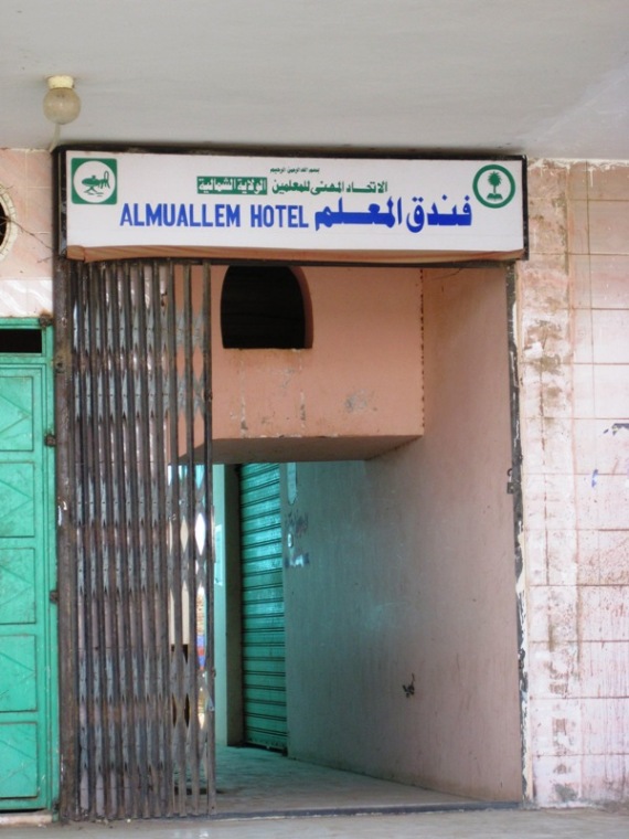 Dongola was a much larger town than I thought it would be… There are nine hotels here for a start! My friend Tariq had recommended the Al Muallem Hotel (“Teacher” in Arabic), and after a short unplanned tour of the town, I gave up searching for it, and asked a young guy on a motorcycle where it was… He very kindly led me to the place, down a long sandy alleyway, and out onto a busy street… He pulled up in front of what at first glance seemed to be a building site…