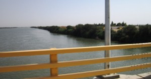 A smudge eventually appeared on the horizon ahead of me… A few minutes later it became a distinct line, and then the line turned green! It was the trees lining the banks of Nile! We were traveling at a steady 160 km/h, and the engine note had hardly changed for the last half hour, while we outran the Haboub… We had left it far behind, or maybe it had changed course… Either way, we didn’t care… Dongola lay up ahead, and it was barely 9.30 am!! We crossed the Nile for the second time today, over yet another wide and modern bridge…