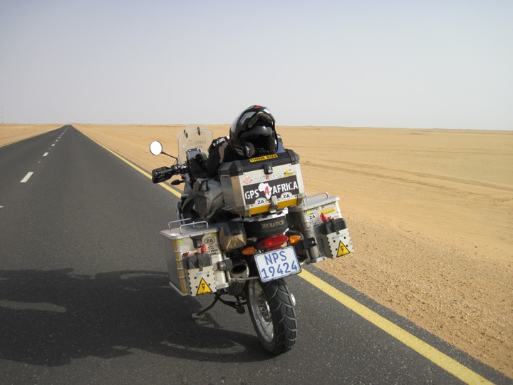 A wicked northerly wind buffeted me from then on, and I could occasionally feel the front wheel come up off the tar… I had one “big moment” as I came out from behind the protection of a long line of sand dunes… I leaned my shoulder to the right to counteract the wind I knew was waiting for me there, but I was a fraction too late… The bike was shoved right across the centre line onto the other side of the road, and while trying to correct the direction it was taking, I came off the power, which severely affected the balance of the machine, sending it into a 100m long wobble that had my heart in my mouth and my sphincter biting holes in my seat… I gave the back brake the slightest of taps to straighten the bike up, while pouring the power back on… That got us on the straight and narrow again… But it had been a near thing…