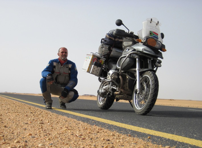 The desert is eerily silent… Nothing out there but sand and stone, and they very seldom break into song… It was 8.30am, and hot enough already to have me sweating in my kit… Out on the northern horizon, I saw a dust cloud billowing up into the sky and watched it for a while, wondering what was causing it… Then I felt a feint movement of air on my cheek, and the answer came to me in a flash… A Haboub…!! It was still a long way off, but it seemed to be moving in my general direction, and that was more than enough to get me back on the bike and up to top speed… I was NOT going to be caught in one of those again… Once was more than enough!