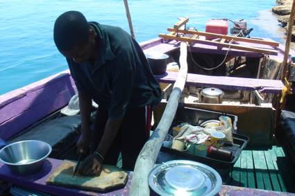 Our meal was brought from the dhow to where we sat under the tarpaulin…