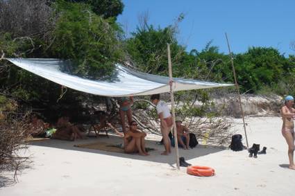 Our “camp” on Margoruque, bikinis everywhere you looked… Joop and I were seriously outnumbered…
