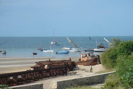 Vilanculos harbour, various vessels rising up off the sand on the incoming tide….