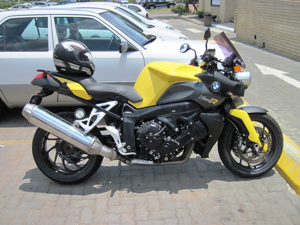 I eased out into the traffic, getting used to a new riding style that has you hunched forward over the tank, as apposed to the very upright riding position required on a GS… Once I was out onto the R21, riding towards Pretoria, I began to experience the beauty of this machine… It is light, handles like a dream and is probably the most well balanced bike I have ever ridden…. I also discovered that the “R”, in “K12ooR”, does not stand for “Relax” !! This bike is super quick !! Whilst cruising along in 6th gear, I gave the throttle a small twist, and the bike took off like a startled cat !! Amazing acceleration !! For sheer exhilaration, swing a leg over one of these Babies, Dudes !!