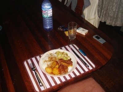 “I have made you some chop, sah…” he proudly announced, and with a flourish whipped a grubby dish towel off the plate below… Remembering the last few meals he had made for me in December, and the resulting GGS (Galloping Gut Syndrome) that took over three weeks to subside, I gingerly worked my way through the meal…