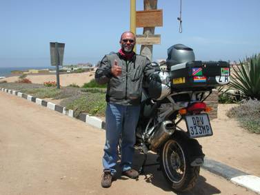 Just before I entered town, I received a text message from Sherry Cromhout, advising me of their GPS co-ordinates, just north of Swakopmund. I plugged them into my trusty machine and we set off to find her. I am still amazed at the accuracy of the Garmin. I followed all the pointers and got to within 11 metres of where Errol’s land Rover was parked. It was great to see someone from “home” so far away from the Lowveld! I had known Sherry and her husband Errol for almost twenty years… We had a quick lunch of cold Snoek sandwiches, and then I left, promising to return for supper later that evening to meet Conrad, Jo-Jo, and their two sons, (family of the Cromhout’s) from Kwambonambi, with whom they were sharing the house for the week…