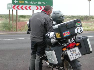 Once at the junction of the gravel road that leads to their farm, and the N10 leading to Namibia, we quickly loaded my kit onto the bike, took many a photo, and I then bid Stoffel and Marli farewell, gave the bike its head and shot away towards Nakop Border Post. The drive there was over in a flash, going through countryside littered with broken hills and barren valleys.