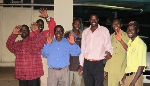 I left Eldoret at 9.00am, after a long and interesting discussion with what seemed like all the male staff of the hotel. They followed me downstairs to the basement, and gathered around the Big Fella, asking questions ten to the dozen, and marveling at the answers I gave… They helped me tie everything in place, and then gathered for a group photo before waving me off and up the ramp into the alley behind the hotel… Shouts of “Safari Njema” followed me all the way up the alley and into the main road, where I turned west and headed out of town…