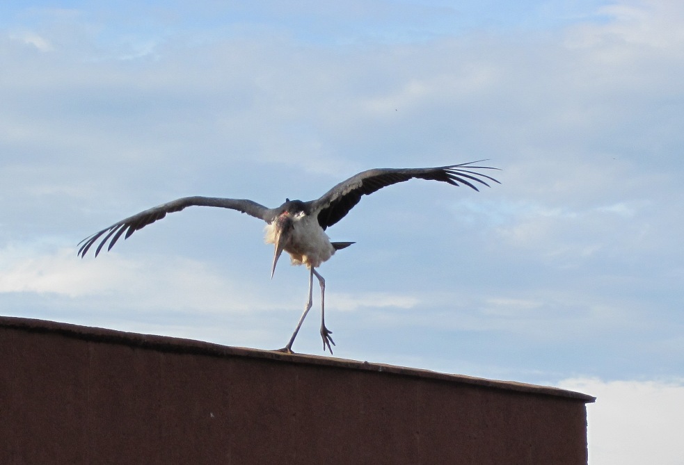 A Marabou Stork lands on the hotel roof... These birds are as common here as Crows are in Lilongwe...