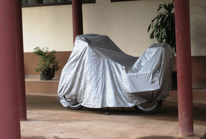 A bus pulled up alongside me and a large group of Pastors and cleric piled out and gathered around the bike… Many photos were taken of various individuals posing next to the bike, while I answered the usual twenty F.A.Q.’s. With so much interest in the bike and despite the fact that it would be parked under a roof, I decided that it would be best to use the cover as well… Too many inquisitive fingers, for the Big Fella’s liking… He gets a bit testy when strangers start pushing and prodding his switches and buttons…