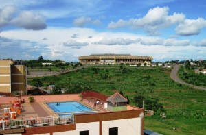 On the outskirts of Kampala, in the suburb of Kireka, and in sight of a giant football stadium, I had finally had enough… I rode through a massive junction that funnels traffic into and around the city, and saw a hotel complex on my left, and pulled into their parking lot to check on rates and internet access, the two priorities on my list of selection criteria! The Sports View Hotel was a heck of a lot fancier that I had expected… From the road it is a fairly non-descript building, without any signage to indicate that it is a hotel… It has a swimming pool, gymnasium, multiple dining rooms and staff that are eager to please…and internet access of course!!