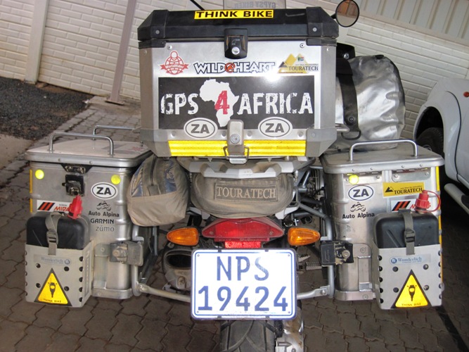 Although I had blown all the dust off the discs and brake calipers while I was at the garage the previous day, the bike still looked a mess, so I wheeled it out from under the parking shed and washed it down. While I was doing this, Stef Coetzee hurried over to tell me to keep out of the sun…