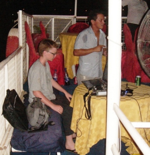 More than fifty revelers boarded the boat just south of the Blue Nile Yacht Club, and for the next four hours, we sailed up the Blue Nile, before turning around and drifting back downstream to our mooring… With Nick acting as DJ for the night, rock music blared out of the speakers that had been brought along. George and Paula served hot dogs, while the partygoers helped themselves to the limited supply of beer and liquor that had mysteriously found its way onto the boat, cleverly disguised as cold-drinks…!!