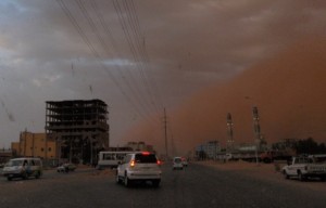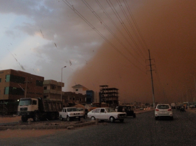 On the day of my arrival in Khartoum, I experienced two separate dust and sand storms, which swept out of the western desert and covered the city and its surroundings in a fine layer of talcum-powder like dust… These sand storms are called haboubs and when they appear on the horizon, it is time to “batten down the hatches”… On the way out to fetch Nick from a riding stable he was at, we rode through the first one, and on the way back later that afternoon, a second one swept over Khartoum… This one even bigger than the first… The dust rose hundreds of feet up into the skies above the city. It was an amazing sight, and the huge cloud moved swiftly away to the northern outskirts, bringing traffic to a virtual halt where the cloud was at its densest…