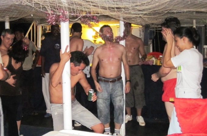 This was a party with a difference! The dancing had the boat rocking, and the Captain casting nervous glances over the side from time to time…