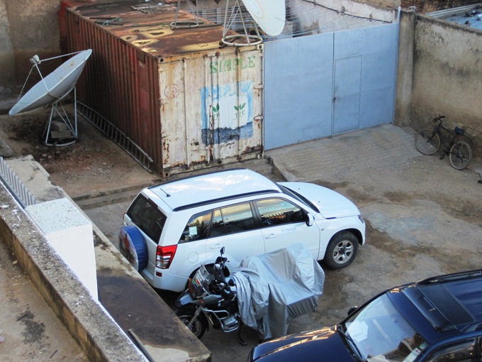 This photo, taken by Worldrider Allan Karl, in February 2008, is in the courtyard where the bikes over-nighted… The container has changed (see above), but the rest of the MR Hotel is exactly as we left it…!!!
