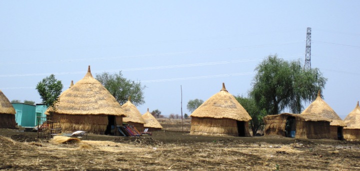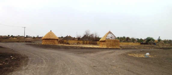 Gone are the mud-walled houses of Ethiopia, which are made by plastering a mixture of cattle dung and mud over a framework of wooden poles… Trees are in very short supply in Sudan, so houses out in the countryside are made entirely of thatch… The Big Bad Wolf would have a field day here… The landscape reminded me northern Kenya, but without the volcanic rocks… Whatever grass there once might have been, was long gone, munched by the scrawny cattle that stood listlessly on the roadside…