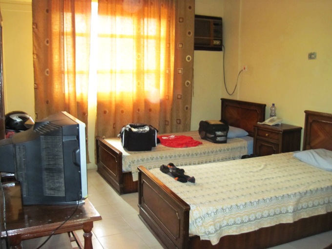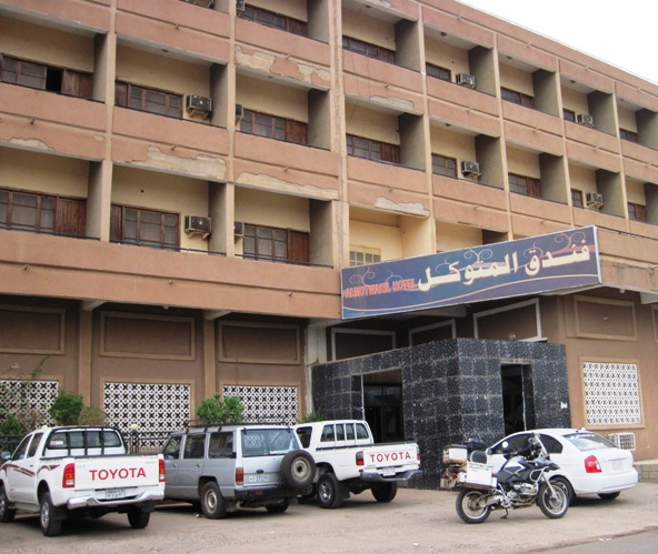 I eventually found one, turned onto it and found myself in a traffic jam… Tuk-Tuks, donkey carts, a few Camels…you name it, and they were there to delay the end to a baking day… I punched in the co-ordinates of the Elmotwakil Hotel, and a short while later saw the hotel up ahead, but pulled into the service station across the road from it to refuel first. At R5.75 / litre, fuel in Sudan is a whole lot cheaper than anywhere else… The usual crowd gathered around, jabbering in Arabic, while I continually shrugged my shoulders to indicate that I no idea what they were asking of me… Eventually a few questions in English were asked and I was able to fill the crowd in on my travels thus far…