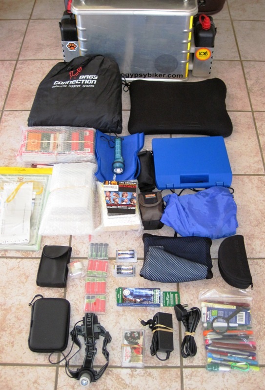My Top Box contains an inner bag with all my clothes… I probably still have too many articles of clothing, but in due course, the T-Shirts will become cleaning rags, and be tossed away… I also have all my essential documents packed into a waterproof pouch, under the clothes bag….