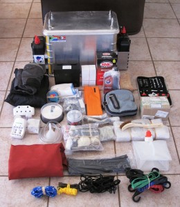 Another Leather-man, a “glow in the dark” gizmo for those dark nights I might find myself stranded next to a busy road…, Pepper Spray – in case the “wrong type” turn up to “help” me… (It’s simple… Psssst ! and then run like hell !!) a torch… to see where I am running….!!! A couple of pens (to give a statement to the police… and a bottle opener (to crack a cold one in celebration of “getting away” from the “wrong type”….see above…)