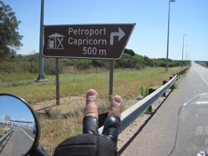 seeing my first Baobab, crossing the Tropic of Capricorn again, (unplanned for !!) and, last, but not least, all the bloody tollgates on the N1… SIX OF THEM !! Give us bikers a break for heavens sake !! The debate about why we must pay the same as cars do will probably rage on forever, I suppose… Our Tollgate companies should adopt the same stance as those in South America and even in our northern neighbor, Zimbabwe, and make tolls FREE FOR MOTORCYCLES… If Mr. Mugabe does not to whack us with toll fees, then why can’t South Africa do the same !! Heavens to Betsy !! Enough already !! Bloodsuckers….!!! It costs R161.50 in tolls to get from Pretoria to the Zimbabwe border… The equivalent of a full tank for the Big Fella, and more importantly, nearly 400 kms of travel…
