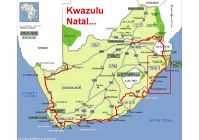 I drove on past Hluhluwe, Mtubatuba, Kwambonambi and Empangeni, through the tollgate at Mtunzini and continued battling into a headwind which had me hanging on grimly at times, when strong gusts threatened to unseat me…