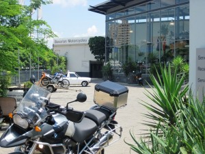 I was advised by Pauli Massyn of GPS4Africa, to take the bike into Bavarian Motorcycles in Pretoria, and see Roger Smith, the Dealer Principal. I had met Roger at the other branch he manages in Pretoria East, and he immediately booked the bike in to have this little problem sorted out. This morning I collected the Big Fella, and was happy to see that the shock had been expertly repaired by the guys at Bavarian. Tinus, the mechanic who had worked on the bike explained a few “do’s and don’ts” with regards to the basic set-up of the shocks, information which I was very grateful for.