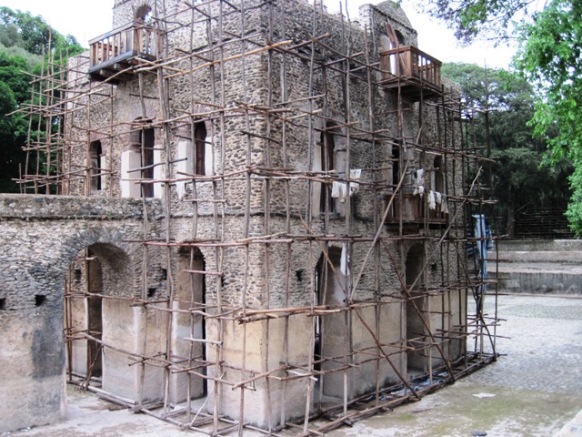 After our visit to the Royal Enclosure, we toured the Baths of Fasilidas, where the Emperor spent much of his time, bathing in the massive pool that was built around and under a small residence, and accessed by a walkway above the waters. The Norwegian government is currently funding the restoration of this World Heritage Site, which is the scene of an annual pilgrimage by thousands of Ethiopians, who come here from the 18th to the 21st of January every year, to commemorate the baptism of Jesus by John the Baptist. The pool is filled, and then blessed by a procession of priests, after which the general populace are invited to “bathe” in the waters…
