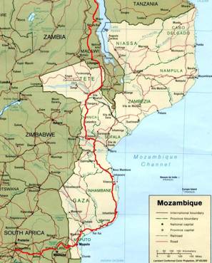I stopped for water and a break after about 180kms of nerve-racking riding, wondering how much more of this I could take, and if I would get to Chimoio before dark… I did not relish the idea of having to spend a night on the side of the road in this area, as I had heard that many of these more remote areas had not been de-mined as yet, and tourists (read nutcases!!) were advised not to deviate from the tar roads under any circumstances… Truck drivers who were forced to sleep along theses stretches of road, never wandered very far from their vehicles… I had seen very few people between the settlements I rode through, and for tens of kilometres at a time, there would be no human habitation at all. Getting stuck out here would be no fun, I was thinking, as I mounted up and got on with the very tricky job of getting to my next fuel stop in one piece…