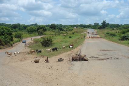 The section of dirt road on the way to the T-junction which led to Zimbabwe in the west, and Chimoio and Beira in the East….