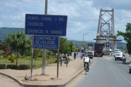 I passed through Moatize and slowed down for all the traffic going into and coming out of Tete… Large convoys of trucks, heading north to Malawi, and others heading to the port of Beira on the East coast, rode nose to tail, making it difficult to pass them. Finally, the massive bridge that spans the mighty Zambezi came into view. It was an amazing sight, this bridge which is almost a kilometre long, suddenly appearing after all the shacks and crumbling shops…