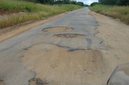 I passed Villa Coutinho on the N7 and crossed the Revuboa River and ran due south to a point where the road runs parallel to the Malawi border, near Blantyre. I passed the turnoff to Zobue and the Malawian border post, and then turned southeast for Boatize and the Angonia T-junction. The road from this point on deteriorated very quickly. Huge potholes opened up, some of them covering the entire width of the road… In many instances I had to stop the bike and walk it through some of the larger potholes. I had wanted to ride this section hard if possible, to make up some time on the way to Tete, but there was to be no chance of this…