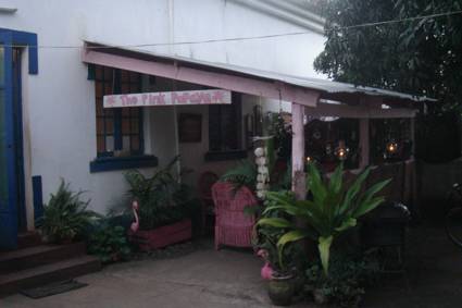 The Pink Papaya was in a side road off the main roundabout, and the gate swung open as I rode onto the wide pavement in front of it. It was 6.30pm, darkness settling over the large trees that grew around a ramshackle house… There was lots of pink… The Cane Furniture, the eaves of the house, the outside rooms, the walls in the kitchen; the decorations….very little had escaped the pink paintbrush…