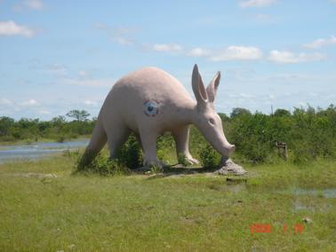 An Aardvark on steroids takes an interest in the bikers passing through the Nxai Pan….