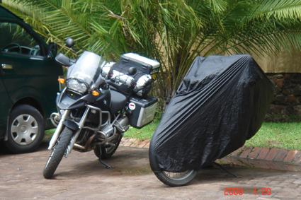 Our bikes parked at the Chobe Safari Lodge… “Doc” is in stealth mode…