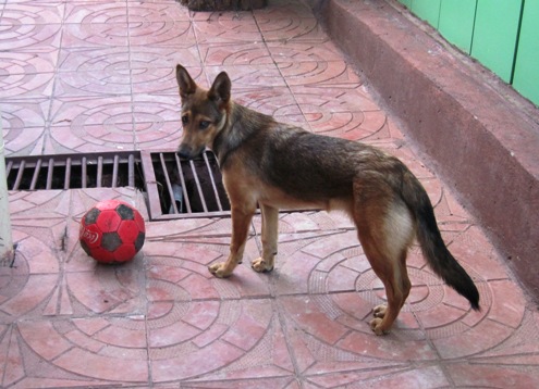 Greig’s dog is a strange looking animal, with more than a little “wild fox” in her… Greig found ED (Ethiopian Dog!) abandoned on the side of the road with a broken leg, and has nursed her back to health… She took a liking to me and followed me everywhere…and I mean everywhere, including into the shower! I had to shoo her out to get the shower door closed…