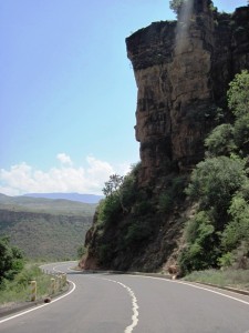 The bridge over the river lies at an altitude of 1100 m.a.s.l. and in just 17 km, the road descends from the high plateau above… That’s a drop of over 2 000 m in a very short space of time… This road is one of the most spectacular I have ridden on and is in such perfect condition that had it not been for its length, I would have ridden back up, and down it again…!!! It is a breathtaking experience, as some of the photos will show…