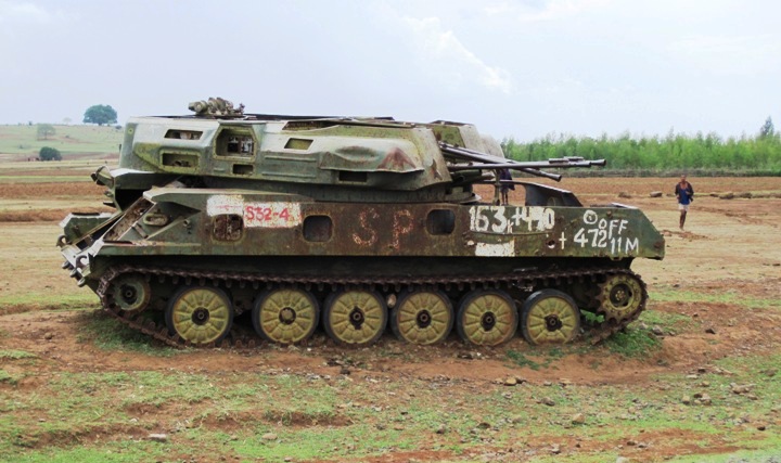 This area had clearly experienced a bit of “argy-bargy” in days gone past, as I began passing burnt out tanks and armoured personnel carriers, some of them in the front yard of houses… When I stopped to take a photo of one of them, a cheeky young fellow ran up to ask for money for the picture…