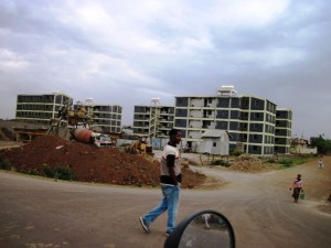 I passed through Meshenti and then 25 kms later entered the outskirts of Bahir Dar, supposedly Ethiopia’s second biggest town after Addis Ababa. A massive housing project is in the process of being built here, and seems completely out of place with the down trodden look of the rest of the town…