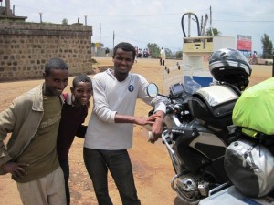 Fifteen minutes after making our acquaintance with the wall, we were battling the traffic through the centre of Addis Ababa, following the Garmin Girl’s explicit instructions… I figured it was best to get back on the bike and ride, rather than nurse my aching left leg, and have to look at the damage my carelessness had caused to the Big Fella… I noticed that the bike handled differently and I had to adjust my position slightly to take this into consideration. It was leaning ever so slightly to the left, and I think this may be a result of a bend handlebar… I just hoped it wasn’t something worse… I had the 565 km ride to Bahir Dar to find out…